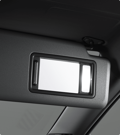 Driver and passenger side sun visor with ticket holder and illuminated vanity mirror